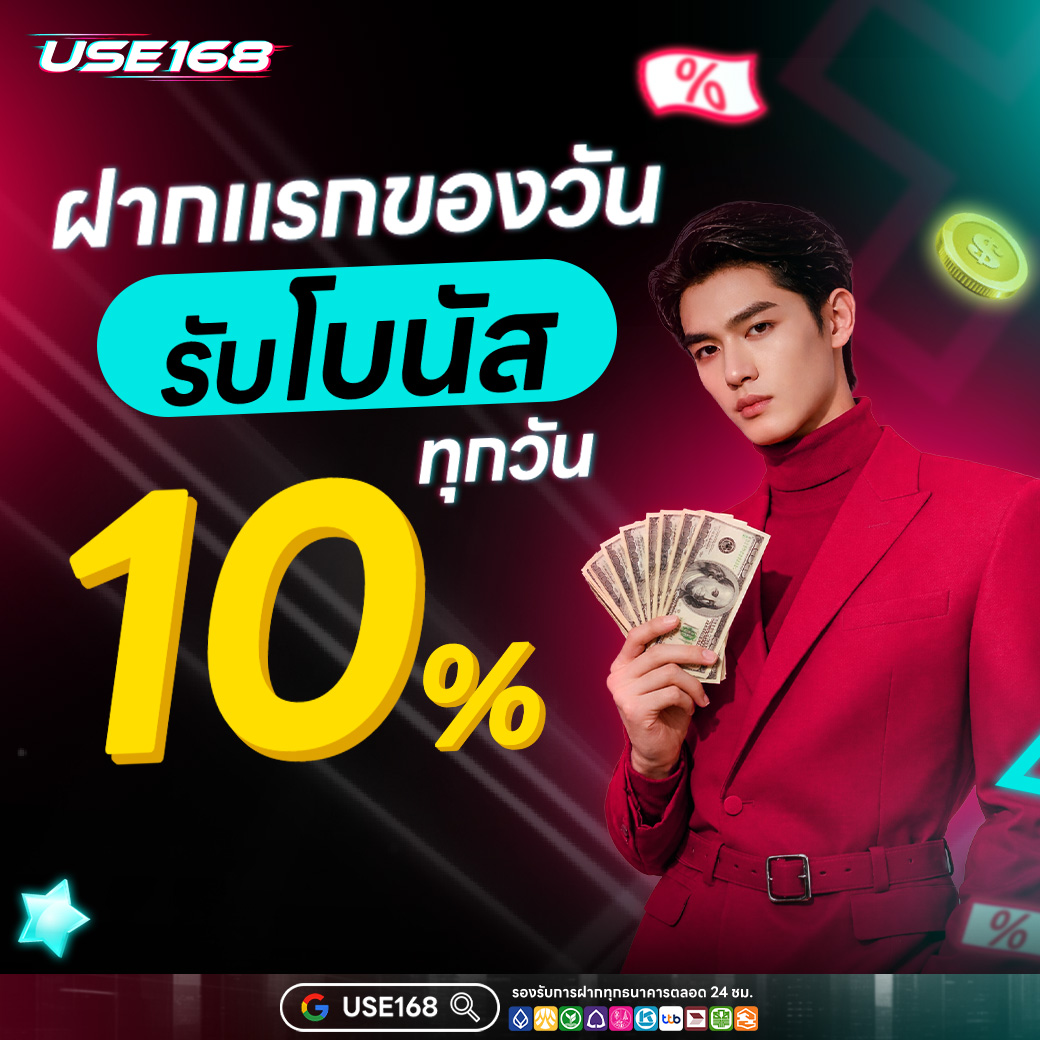 เริ่มต้นด้วยการสมัครสมาชิกง่าย ๆ ผ่านหน้าเว็บไซต์ USE168 เมื่อทำการฝากเงินครั้งแรก คุณจะได้รับโบนัสพิเศษทันที ยิ่งฝากมาก ยิ่งได้รับโบนัสมาก สูงสุดถึง 100% ของยอดฝาก ตัวอย่างเช่น ถ้าคุณฝากเงิน 1,000 บาท จะได้รับโบนัสเพิ่มอีก 1,000 บาท รวมเป็นเงินที่เล่นได้ถึง 2,000 บาทเลยนะ